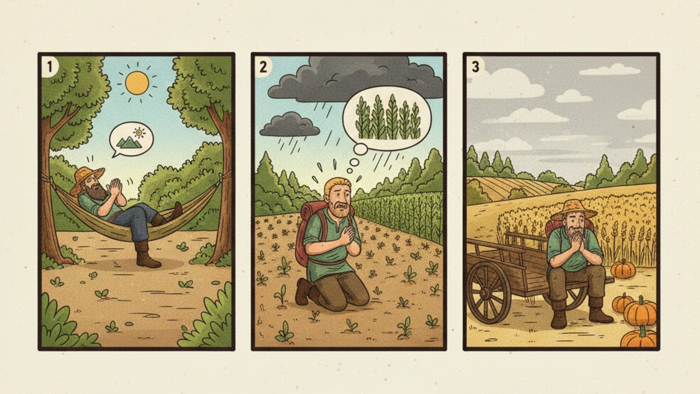 A farmer relied on luck for the whole season for farming and just prayed instead of putting in effort and suffered losses at the time when a full year passed.